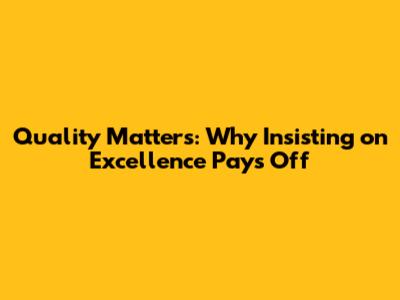 Quality Matters: Why Insisting On Excellence Pays Off