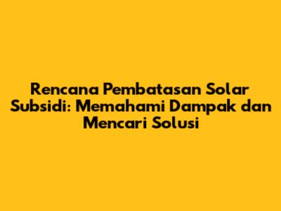 Hai guys! Mari kita bahas tentang rencana pembatasan solar subsidi yang lagi hangat diperbincangkan. Pasti banyak dari kalian yang penasaran, gimana sih sebenarnya rencana ini, apa dampaknya, dan apa solusinya? Artikel ini bakal mengupas tuntas semua itu, jadi simak terus ya!
