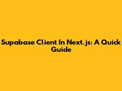 Supabase Client In Next.js: A Quick Guide