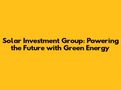 Solar Investment Group: Powering The Future With Green Energy