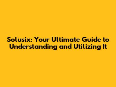 Solusix: Your Ultimate Guide To Understanding And Utilizing It