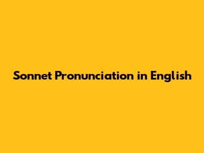 Understanding the Basics of "Sonnet" Pronunciation