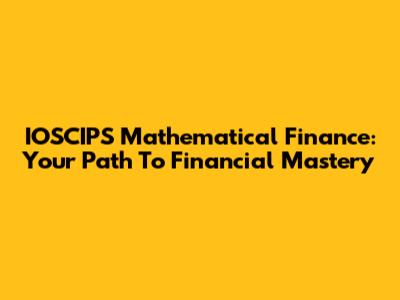 IOSCIPS Mathematical Finance: Your Path To Financial Mastery