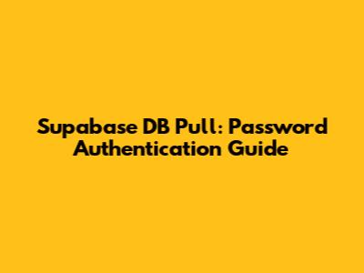 Supabase DB Pull: Password Authentication Guide