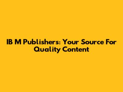 IB M Publishers: Your Source For Quality Content