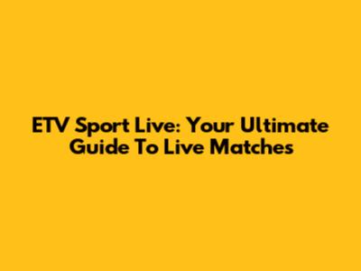 ETV Sport Live: Your Ultimate Guide To Live Matches