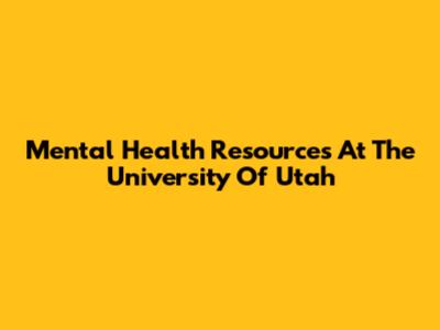 Mental Health Resources At The University Of Utah