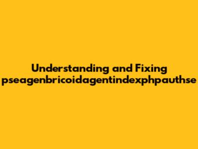 Understanding And Fixing Pseagenbricoidagentindexphpauthse