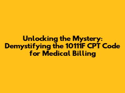 Hey everyone, let's dive into something super important for anyone involved in medical billing or coding: the 10111F CPT code. You might be wondering, "What exactly is this code, and why should I care?" Well, guys, understanding these codes is absolutely crucial for accurate billing, getting paid on time, and keeping your practice running smoothly. Think of CPT codes as the secret language of healthcare billing. They're used to describe the medical procedures and services performed by healthcare providers. Without them, it would be a chaotic mess trying to figure out who did what and what they should be reimbursed for. The 10111F code, in particular, plays a specific role, and knowing its nuances can save you a ton of headaches and potential revenue loss. We're going to break down what it represents, where it's used, and why it's so vital to get it right. So, buckle up, because we're about to shed some serious light on this often-misunderstood piece of the medical billing puzzle. This isn't just about ticking boxes; it's about ensuring financial accuracy and operational efficiency in your healthcare practice. We'll explore its context within the broader CPT system and highlight common scenarios where you'll encounter it. Remember, precision in medical coding directly impacts patient care logistics and provider compensation, making this a topic that deserves your full attention. Let's get started on unraveling the significance of the 10111F CPT code together!