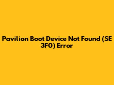 Pavilion Boot Device Not Found (SE 3F0) Error