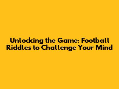 Unlocking The Game: Football Riddles To Challenge Your Mind