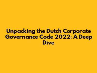 Hey everyone! Let's dive into the Nederlandse Corporate Governance Code 2022, often referred to as the Dutch Corporate Governance Code. It's a big deal in the Netherlands, shaping how companies are run and making sure everyone plays fair. Think of it as the rulebook for good corporate behavior, setting the standards for how boards of directors, shareholders, and other stakeholders should interact. This code isn’t just some dusty document; it's a living thing, updated to keep pace with the times and the ever-changing world of business. The 2022 version, in particular, brought some significant changes, so let's break it down and see what it's all about. Understanding this code is crucial for anyone involved in Dutch business, from investors to company executives. It promotes transparency, accountability, and ultimately, helps build trust in the market. We'll explore the key principles, how they work in practice, and why they matter. Basically, it's about making sure companies are run ethically and sustainably, which benefits everyone in the long run. So, grab a coffee, and let’s get started with this in-depth exploration of the code!