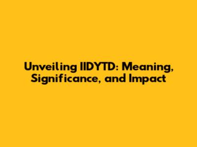 Unveiling IIDYTD: Meaning, Significance, And Impact
