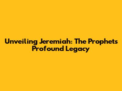 Unveiling Jeremiah: The Prophet's Profound Legacy