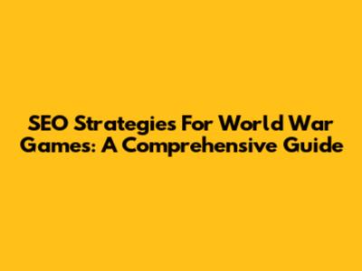 SEO Strategies For World War Games: A Comprehensive Guide