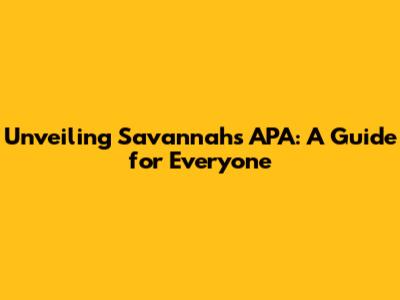 Unveiling Savannah's APA: A Guide For Everyone