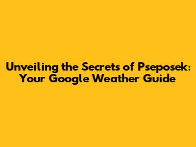 Unveiling The Secrets Of Pseposek: Your Google Weather Guide