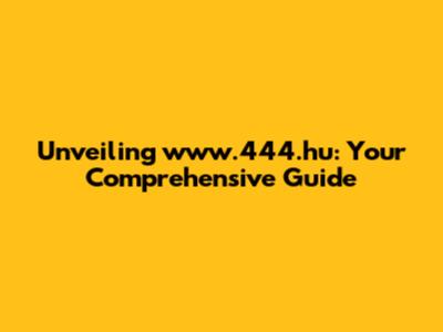 Unveiling Www.444.hu: Your Comprehensive Guide