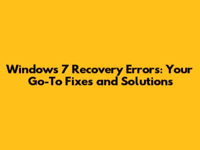 Step-by-Step Solutions for Windows 7 Recovery Errors