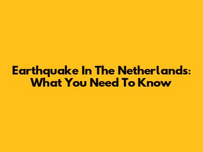 Earthquake In The Netherlands: What You Need To Know