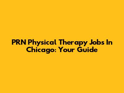 PRN Physical Therapy Jobs In Chicago: Your Guide