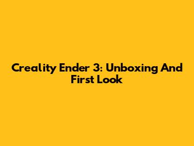 Creality Ender 3: Unboxing And First Look