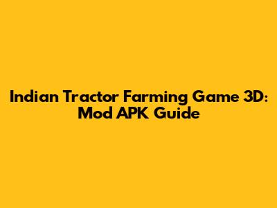 Indian Tractor Farming Game 3D: Mod APK Guide