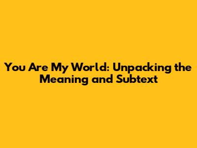 Now, let's talk about the “MM sub” part you mentioned. This likely refers to a specific context, possibly within online communities or subcultures, where the phrase "You are my world" carries additional weight and specific connotations.