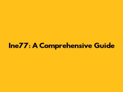 Ine77: A Comprehensive Guide